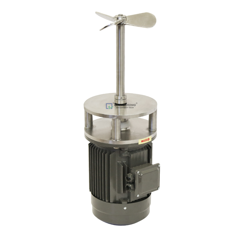 推進式攪拌器結(jié)構(gòu)簡單,制造方便,剪切作用不大,循環(huán)性能好,屬于循環(huán)型攪拌器。攪拌機由電機、機械密封、堵漏裝置、攪拌軸、攪拌器等組成,適用于粘度低、流量大的場合。它利用較小的攪拌功率,通過高速轉(zhuǎn)動的槳葉能獲得較好的攪拌效果,主要用于液-液體系混合、溫度均一,在低濃度固-液體系中防止淤泥沉降等。